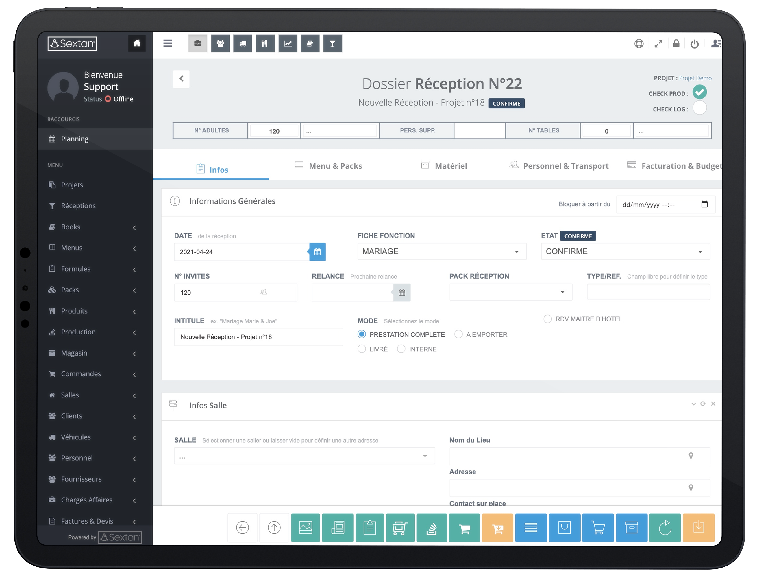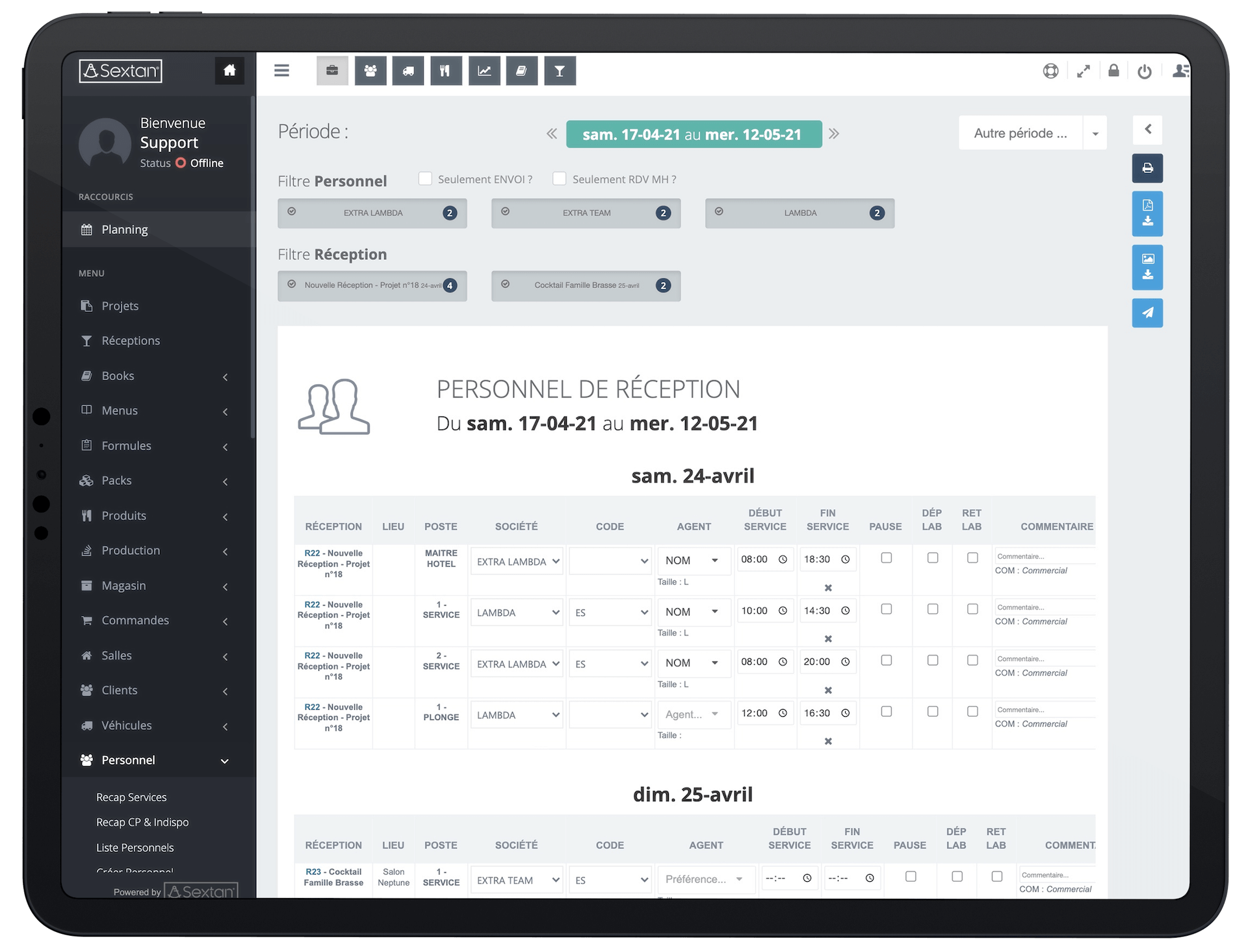 Gestion du Personnel de Réceptions Permet d’associer du personnel, des fonctions et des horaires aux réceptions